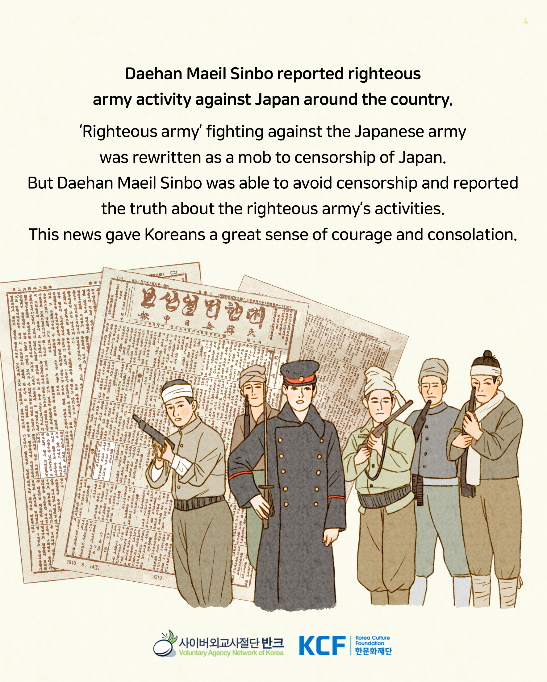 ‘Righteous army’ fighting against the Japanese army was rewritten as a mob to censorship of Japan. But Daehan Maeil Sinbo was able to avoid censorship and reported the truth about the righteous army’s activities.